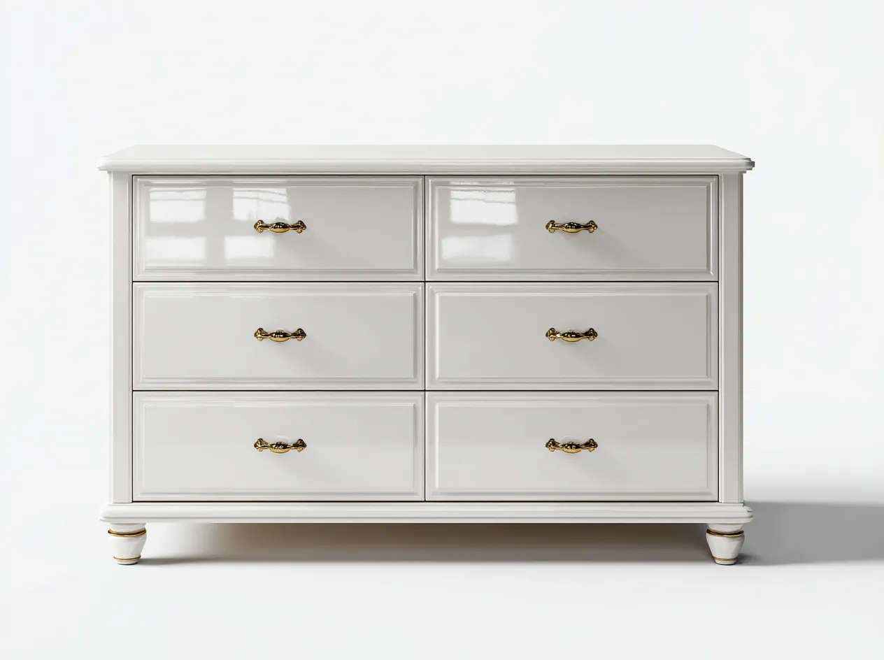 Cassettiera-Legno-MDF-140x45x85 cm-Bianco lucido-Stile classico elegante